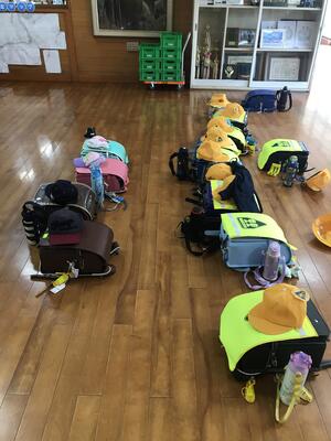 ランドセルをきれいに並べて、大谷選手のグローブを使って遊んでいる1・2年生でした。