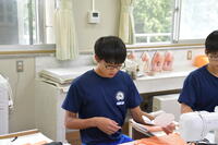 自分が選んだ色の生地に型紙を貼って切り取っていました。桐陽祭に作品を展示できるように頑張っています。