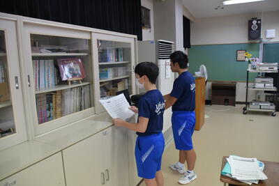 2年生は、音楽です。「旅立ちの歌」をパートに分かれて練習をしていました。タブレットに録音して確認するなど、ICTの活用をしてがんばっていました。