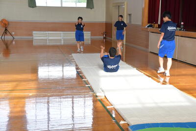 開脚前転の練習です。
