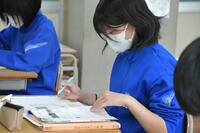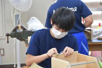 1年生は、技術です。前回に引き続き、木工製作です。今日は仕上げに力を入れていました。